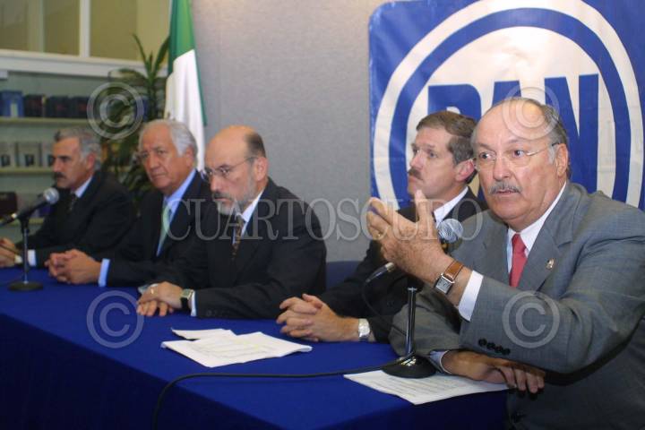 México, D.F. 07 OCTUBRE 2004.- Los gobernadores panistas Marcelo de los Santos, el lider del partido Luis Felipe Bravo Mena, Juan Carlos Romero Hicks, Eugenio Elorduy y Alejandro Zapata hablaron sobre las participaciones de los gobiernos de los Estados en torno a los recursos educativos con respecto al gobierno de la ciudad. FOTO: CUARTOSCURO.COM