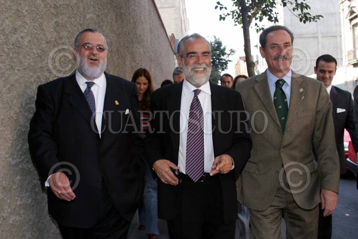 México, D.F., 02DICIEMBE2004.- José Luis Soberanes, presidente de la CNDH, Diego Fernández de Cevallos, senador del PAN y Ernesto Gil Elorduy, senador del PRI, durante una caminata por la calle de Cuba en el Centro Histórico. FOTO: Moisés Pablo/CUARTOSCURO.COM