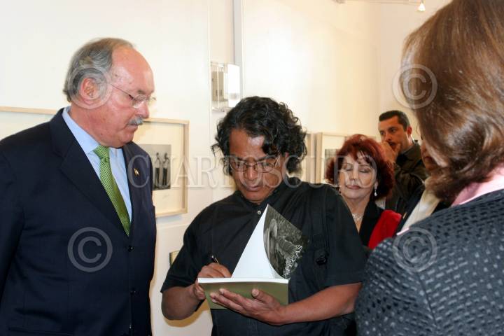 MEXICALI,BC.14DEMARZO.2006.- Eugenio Elorduy Walter, gobernador del Estado y el fotógrafo Pedro Valtierra, durante la exposición "Zacatecas" , dentro de los festejos del 103 aniversario de la fundación de la ciudad, en la galería "Rufino Tamayo" casa de la cultura del municipio. FOTO: CUARTOSCURO.COM