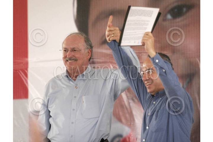 MEXICALI, BAJA CALIFORNIA.16MARZO2007 El presidente de México Felipe Calderón al lado del gobernador Eugenio Elorduy Walter durante el evento de acciones sociales. FOTO: ALFREDO GUERRERO/CUARTOSCURO.COM