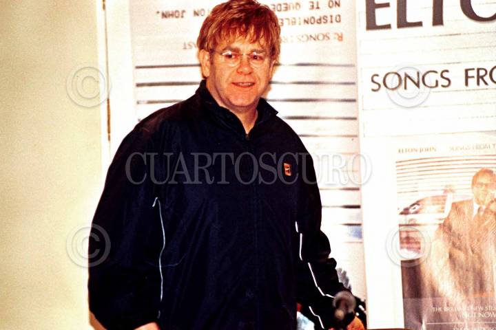 El cantante Inglés, Elton John, ofreció una rueda de prensa esta tarde en el hotel donde se encuentra hospedado. FOTO: Victoria Valtierra/CUARTOSCURO.COM