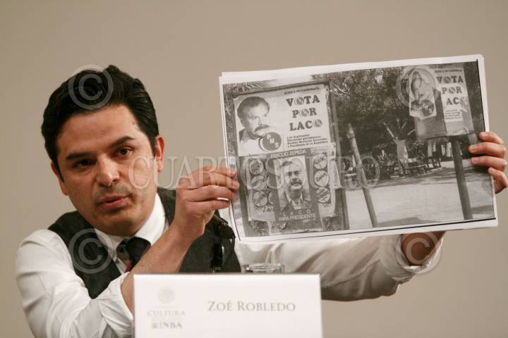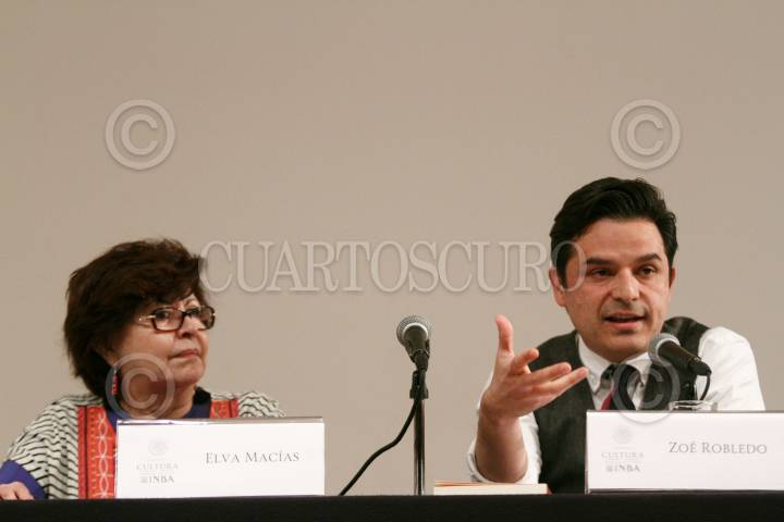 CIUDAD DE MÉXICO, 05NOVIEMBRE2017.- El antropólogo Carlos Navarrete Cáceres; la escritora Elva Macías, y el senador Zoe Robledo, durante la presentación del libro "Eraclío Zepeda. Iconografía", en el Palacio de Bellas Artes. FOTO: MOISÉS PABLO /CUARTOSCURO.COM