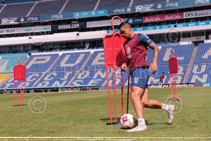 Emanuel Gularte durante el entrenamiento en el Estadio Cuauhtémoc.