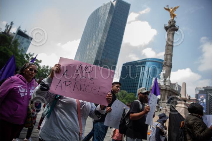 CIUDAD DE MÉXICO, 23 DE JULIO DE 2025.– Distintas organizaciones sociales se manifestaron de manera pacífica frente al Ángel de la Independencia y marcharon hacia la embajada de Estados Unidos, en protesta por las medidas arancelarias impuestas por el presidente estadounidense Donald Trump a México y otros países. FOTO: ANDREA MURCIA / CUARTOSCURO.COM