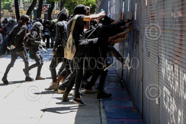 Los "Antifascistas" realizaron pintas y quebraron cristales en protesta por la muerte del afroamericano George Floyd y de Giovanni López.