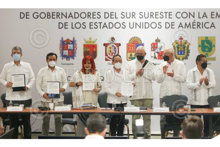 Ken Salazar, embajador de USA en México, firmó un convenio de colaboración con siete estados del país del sur, durante el Tercer Encuentro de Gobernadores del Sur Sureste con la Embajada de los Estados Unidos de América.
