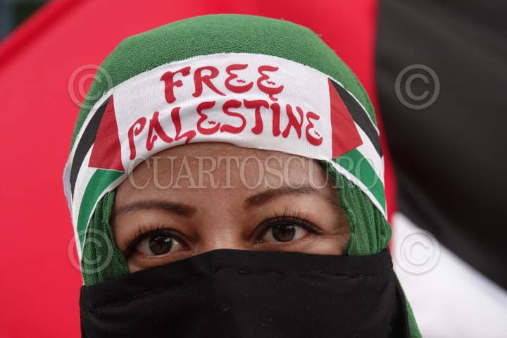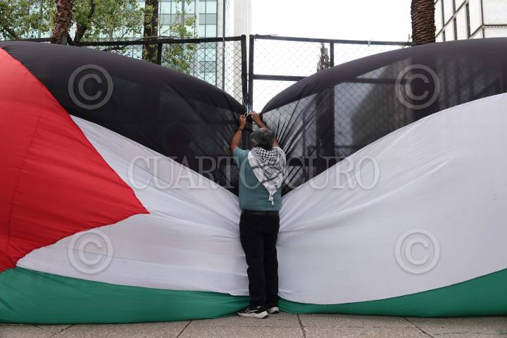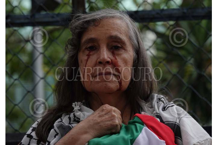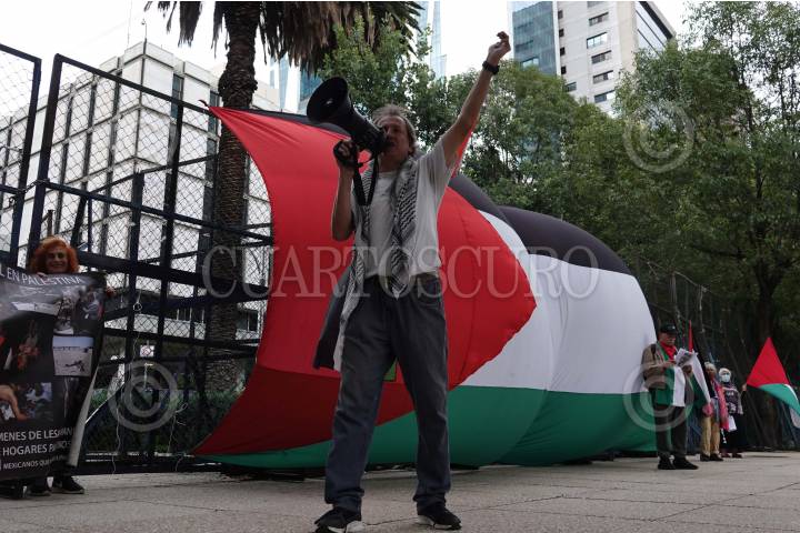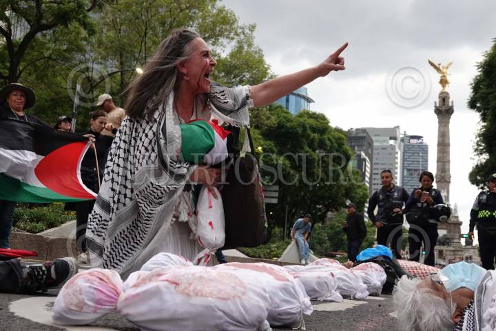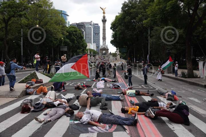 CIUDAD DE MÉXICO, 18AGOSTO2024.- Activistas protestaron en contra de los bombardeos en Palestina frente a la Embajada de Estados Unidos, así mismo realizaron un performance sobre avenida Reforma exigiendo justicia por los genocidios en este país. FOTO: GRACIELA LÓPEZ /CUARTOSCURO.COM