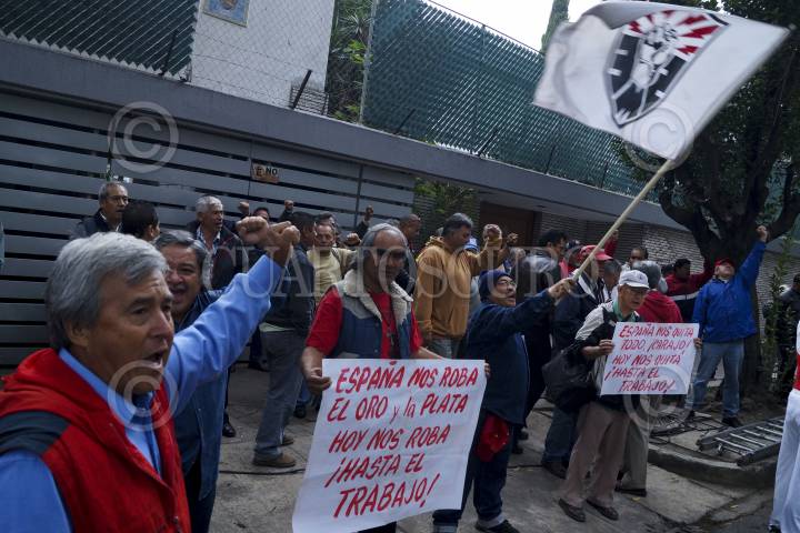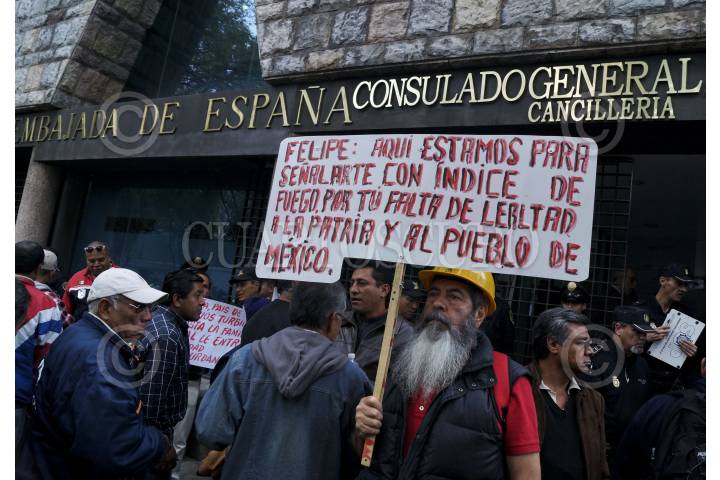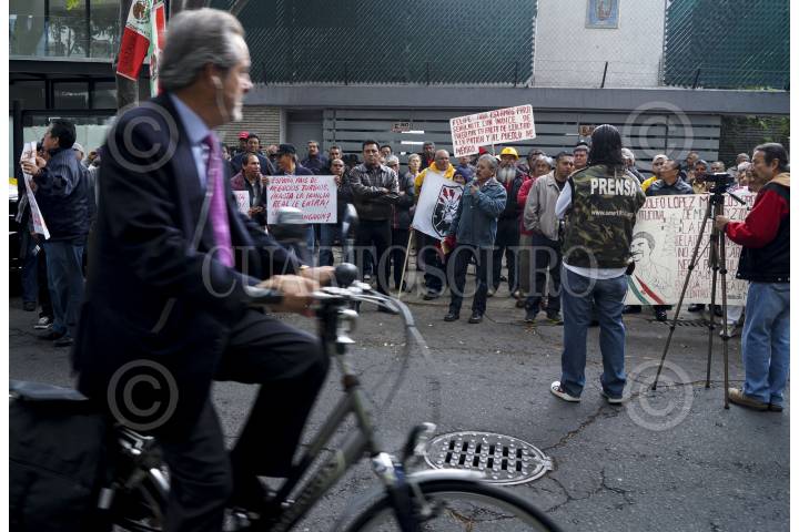 MÉXICO, D.F., 27SEPTIEMBRE2012.- Integrantes del Sindicato Mexicano de Electricistas, realizaron una manifestación frente a la Embajada española. Los trabajadores realizaron consignas en contra de empresas españolas de electricidad que tienen inversión en el país, además de solidarizarse con el pueblo español por la represión sufrida hace dos días. FOTO: ADOLFO VLADIMIR /CUARTOSCURO.COM