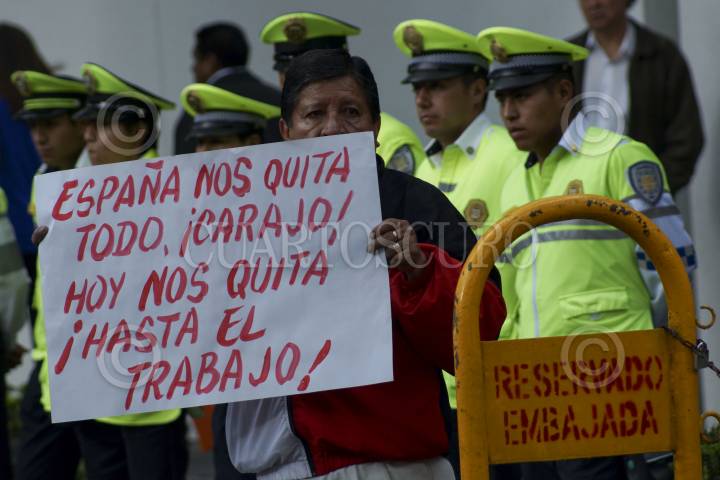 María Josefina Carretas Chávez (madre de Daniela Guadalupe Reyes Carretas, menor que murió en el incendio de la Guardería ABC), durante la protesta en la Embajada de España, para expresar su rechazo a la designación de Claudia Pavlovich como cónsul de Barcelona.