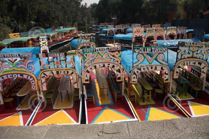 Trajineras Xochimilco, en el embarcadero principal de esta demarcación.