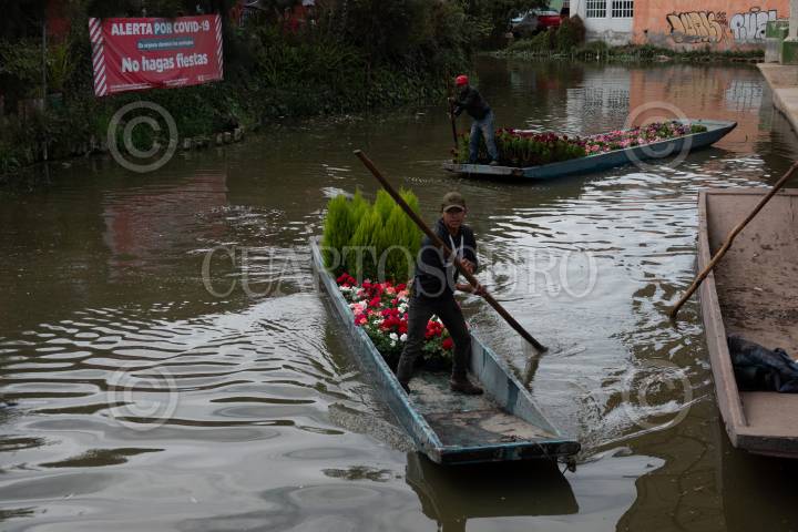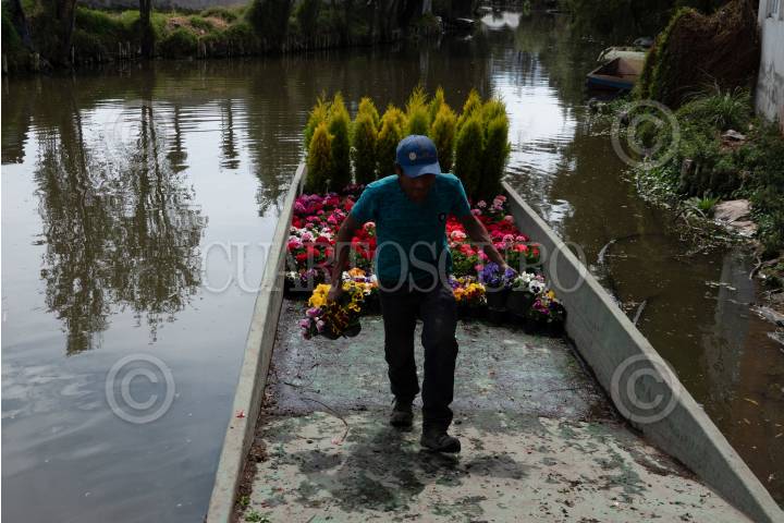 Riego de rosas en el Embarcadero Caltongo, en la alcaldía Xochimilco
