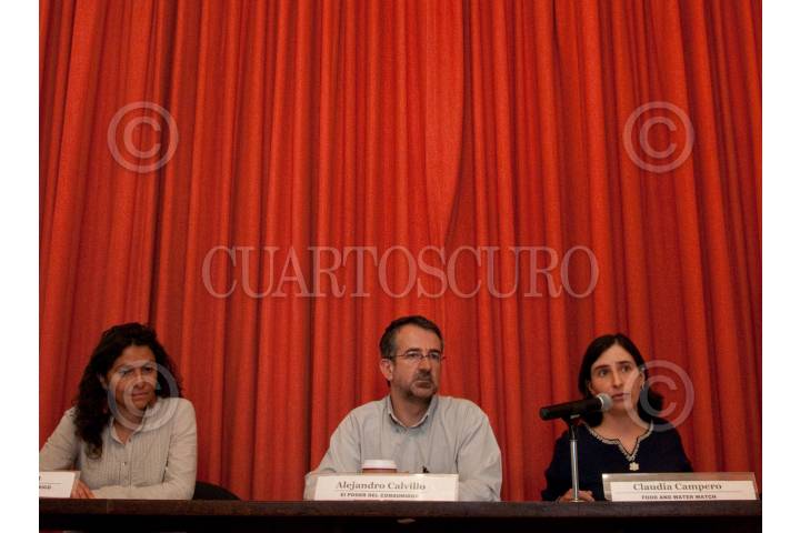 MÉXICO, D.F., 17MAYO2010.- En conferencia de prensa la organización civil "El Poder del Consumidor", encabezados por Nathalie Séguin, Alejandro Calvillo y Claudia Campero de "Food and water watch", anunciaron que México se ha convertido en el primer consumidor mundial de agua embotellada. Se informó que de acuerdo al último reporte de la Beverage Marketing Corporation (abril-mayo de 2010), el consumo por persona de agua embotellada llegó a 234 litros al año. El consumo per cápita es más del doble que los estadounidenses (110 litros) y se encuentra muy por encima del de España (119 litros). El volumen representa el 13% de las ventas mundiales de agua embotellada. FOTO: MISAEL VALTIERRA/CUARTOSCURO.COM
