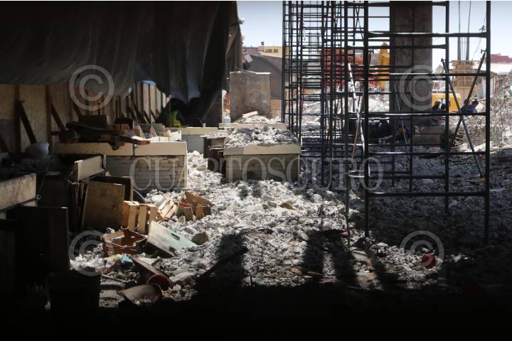 Trabajadores continúan en la reconstrucción de la Nave Menor del Mercado la Merced