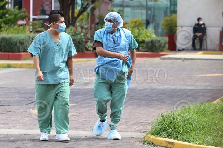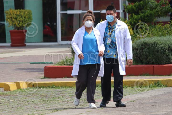 Personal Médico caminan por los pasillos del patio del Hospital General Tláhuac