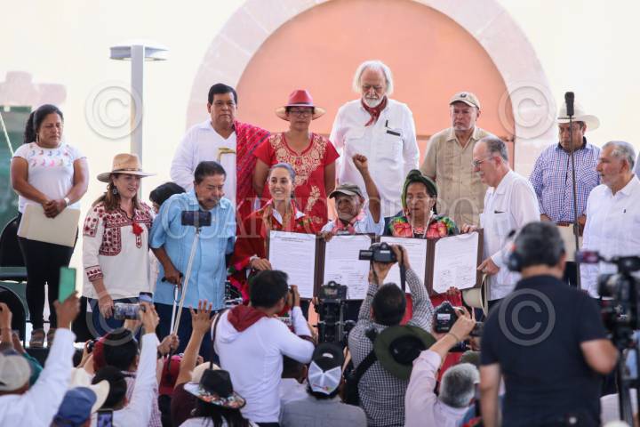 AYALA, MORELOS, 10ABRIL2024.- La candidata de la coalición Sigamos haciéndo historia, Claudia Sheinbaum Pardo, firmo un documento con compromisos con el sector campesino. El evento de realizó en las ex hacienda de Chinameca, sitio donde hace 105 años fue asesinado el General Emiliano Zapata. FOTO: MARGARITO PÉREZ RETANA/CUARTOSCURO.COM