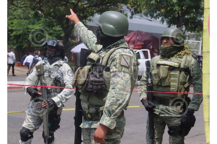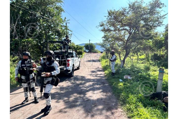 CUERNAVACA MORELOS, 05AGOSTO2024.- Elementos de la Guardia Nacional acordonan una escena de crimen donde fue localizado el cadáver de un hombre en la zona rural de este municipio. Fue por la mañana que personas que transitaban por la calle Puente Colorado en la colonia El Organo, tuvieron a la vista el cuerpo de un hombre sin vida que presentaba huellas de violencia. Más tarde en el municipio de Temixco, en la calle Puebla de la colonia Eterna Primavera fue localizado el cadáver de un hombre calcinado. A esto hay que sumar que durante la noche dos sujetos fueron asesinados a balazos en el centro de la capital, específicamente fuera de la plaza comercial conocida como "La Fayuca", a una cuadra del Palacio de Gobierno. En todos los homicidios se limito la escena de los hechos en espera de los investigadores y peritos de la Fiscalía de Justicia quienes levantaron evidencias para la averiguación que inicia. Finalmente los cadaveres fueron levantados por el Servicio Médico Forense y llevados a la morgue, dónde se espera sean reconocidos y reclamados por sus familiares. FOTO: ESPECIAL/CUARTOSCURO.COM