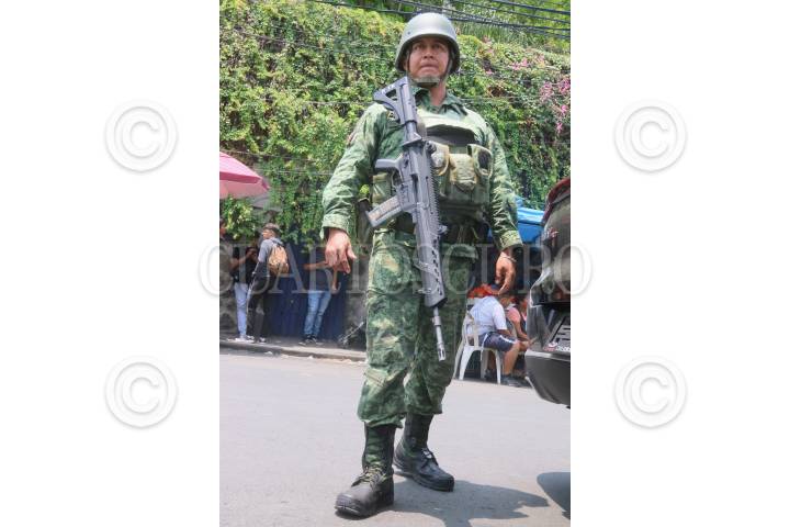 CUERNAVACA, MORELOS, 08AGOSTO2025.- Un grupo de soldados del Ejercito antes de la Ceremonia Cívica y Develación del Monumento del General Emiliano Zapata Salazar en la Plaza de Armas de la capital, encabezada por la gobernadora Margarita González Saravia y todo su gabinete, además de los representantes de los poderes legislativo y judicial. FOTO: MARGARITO PÉREZ RETANA/CUARTOSCURO.COM