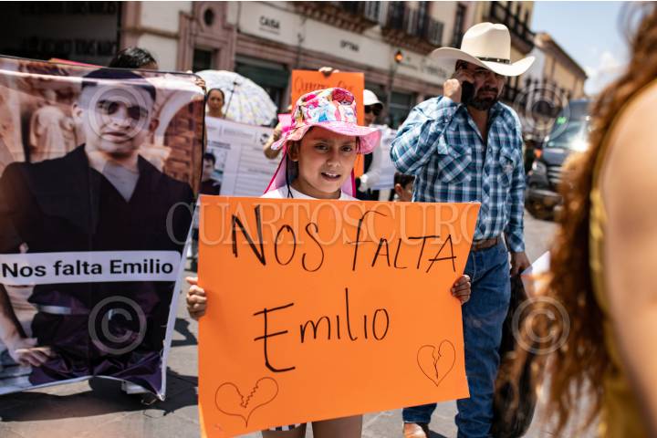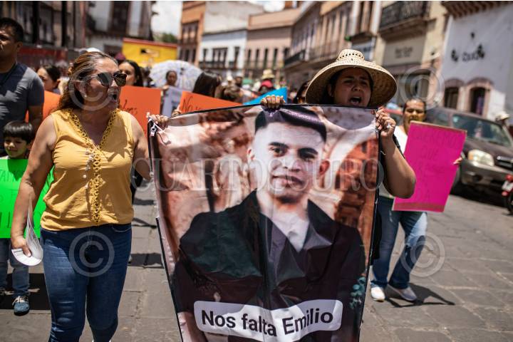 ZACATECAS, ZACATECAS, 07JUNIO2024.- Familiares y amigos de Emiliano Grijalva Villa, joven de 29 años desaparecido el pasado 30 de mayo en Guadalupe, se manifestaron por las principales calles del centro histórico para demandar trabajos de búsqueda y la aparición con vida de Emilio. Desde el mes de mayo la cifra de desaparición en el Estado había sobrepasado las 4 mil personas desaparecidas, a pesar del Año de la Paz que el Gobierno del Estado promovió en este año 2024. FOTO: ADOLFO VLADIMIR /CUARTOSCURO.COM