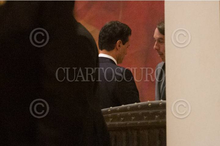 CIUDAD DE MÉXICO, 11MAYO2017.- Enrique Peña Nieto, Presidente de México, y Emilio Azcarraga, presidente del Grupo Televisa, conversan tras terminar la reunión con el Consejo Mexicano de Negocios, en el Club Industriales. FOTO: MOISÉS PABLO /CUARTOSCURO.COM