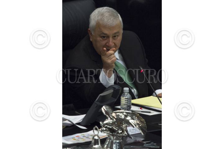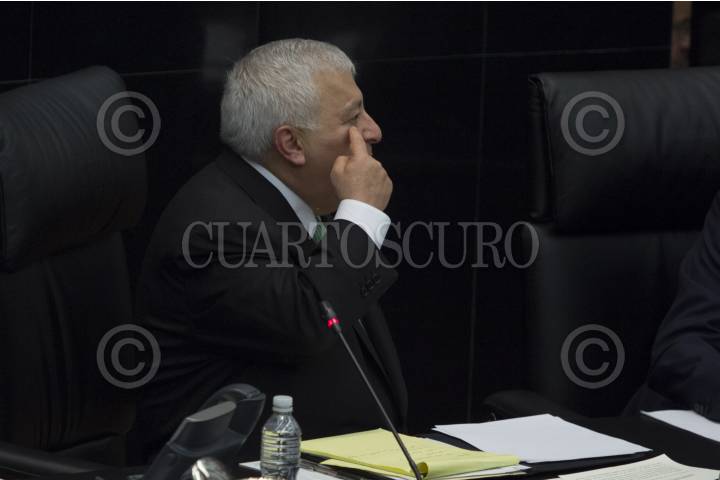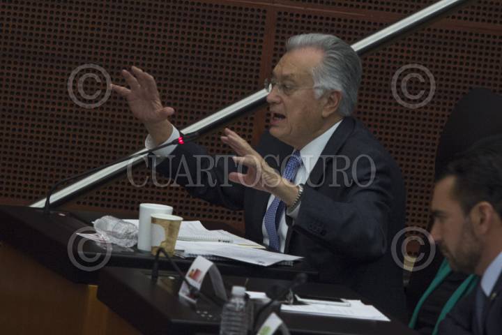 MÉXICO, D.F., 23JUNIO2015.- Manuel Bartlet senador del PT durante la comparecencia de Emilio Chuayffet Chemor, Secretario de Educación Pública en la Cuarta Reunion Ordinaria de la Segunda Comisión de la Comisión Permanente Relaciones Exteriores, Defensa Nacional y Educación dentro del edificio del Senado de la República. FOTO: ENRIQUE ORDÓÑEZ /CUARTOSCURO.COM