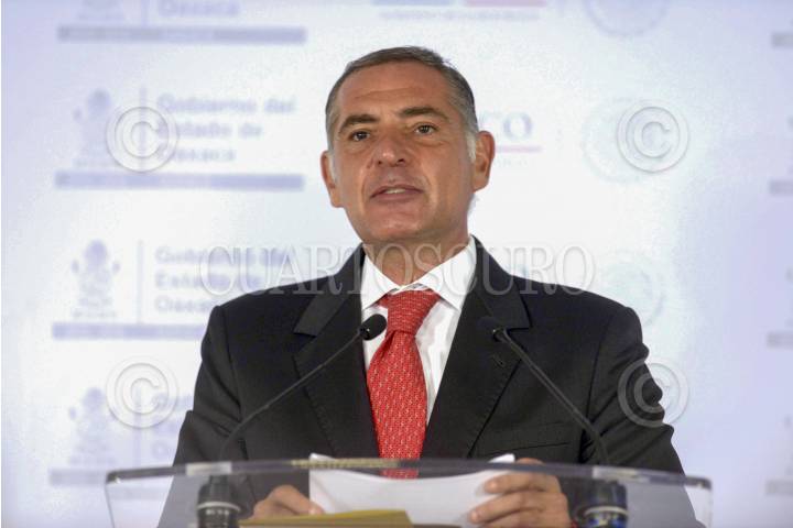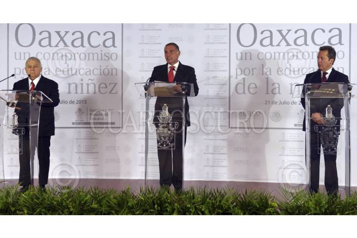 OAXACA, OAXACA, 21JULIO2015.- Emilio Chuayffet Chemor, Secretario de Educación Pública durante el mensaje que realizaron para dar a conocer la nueva estructura del Instituto Estatal de Educación Pública de Oaxaca (IEEPO) donde no habra maestros trabajando hay sino personas designado por el gobierno estatal. FOTO: SEP /CUARTOSCURO.COM