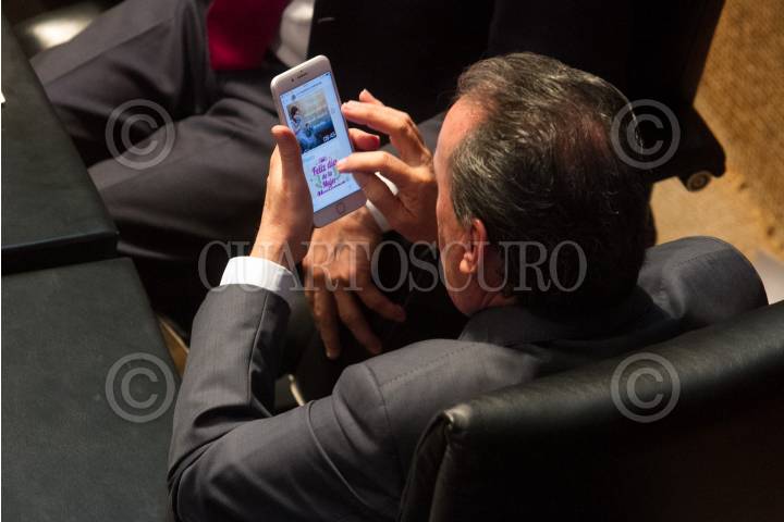 CIUDAD DE MÉXICO, 15FEBRERO2018.- El coordinador priista Emilio Gamboa Patrón revisa su teléfono inteligente durante la sesión en la Cámara de Senadores. FOTO: MOISÉS PABLO /CUARTOSCURO.COM