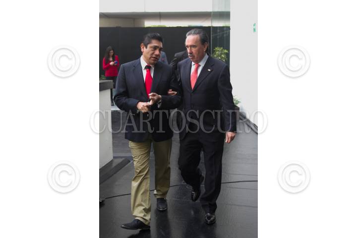 CIUDAD DE MÉXICO, 29NOVIEMBRE2017.- Manlio Fabio Beltrones, ex presidente del PRI, y Alfredo Del Mazo, gobernador del Estado de México, durante la reunión de la mesa de la Comisión Política Permanente para dar a conocer la aprobación de documentos y postulación de José Antonio Meade Kuribreña para ser electo candidato a la presidencia en 2018 por el tricolor. FOTO: GALO CAÑAS /CUARTOSCURO.COM