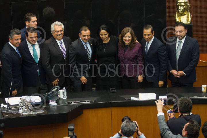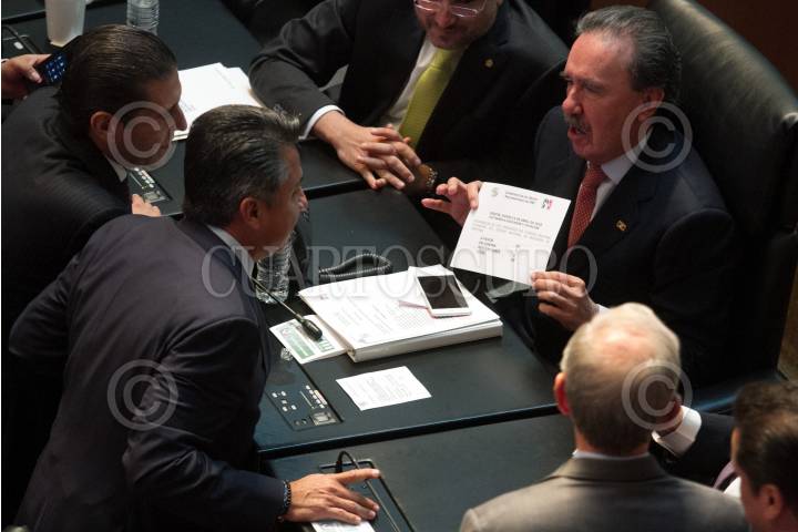 CIUDAD DE MÉXICO, 28AGOSTO2018.- Legisladores, encabezados por Ernesto Cordero, durante la última sesión de la Comisión Permanente de la Sexagésima Cuarta Legislatura. FOTO: ISAAC ESQUIVEL /CUARTOSCURO.COM