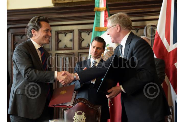 ABERDEEN, ESCOCIA, 05MARZO2015.- Durante la presentación de los resultados de los seminarios sobre Energía, Cadenas productivas y Cambio Climático, el Presidente Enrique Peña Nieto destacó lo que considera beneficios que de la Reforma Energética. Entre estos; “asegurarnos que tengamos mayor autosuficiencia energética; que dejemos de importar aquellos insumos que hoy, a un precio más alto, pudiéramos estar explotando en nuestro país como, por ejemplo, tratándose de gas”. El Primer Mandatario estuvo acompañado por los Secretarios de Energía, Joaquín Coldwell; de Medio Ambiente y Recursos Naturales, Juan José Guerra Abud, y por el Director General de PEMEX, Emilio Lozoya Austin. FOTO: PRESIDENCIA /CUARTOSCURO.COM
