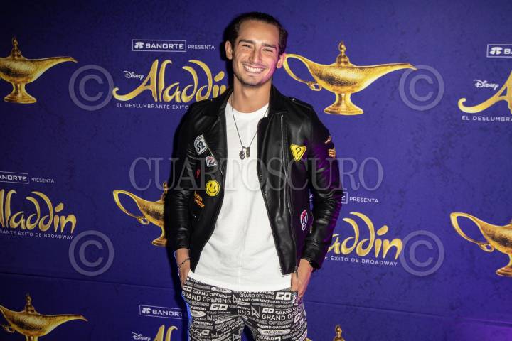 Emilio Osorio durante la alfombra roja por las 450 representaciones del musical Aladdín, que se presenta en el Teatro Telcel.