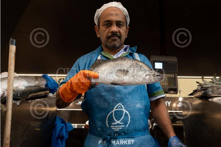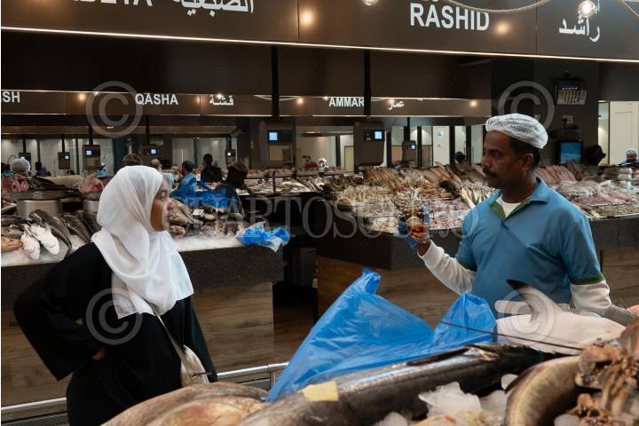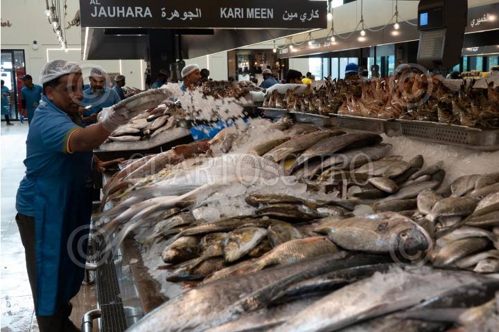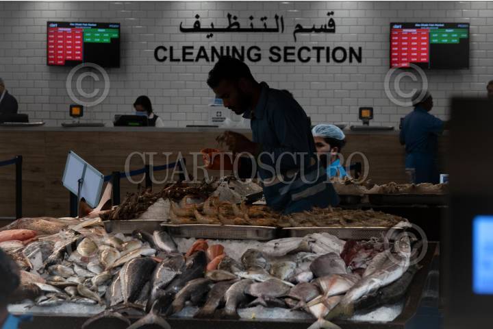 ABU DHABI, EMIRATOS ÁRABES UNIDOS, 18NOVIEMBRE2023.- Migrantes de Egipto, India y países aledaños a Dubai, trabajan en en el Mercado Central de Pescado "Fish Market", remodelado en este año, después de ser remolido en 2022 y fundado en 1990. FOTO: GRACIELA LÓPEZ /CUARTOSCURO.COM