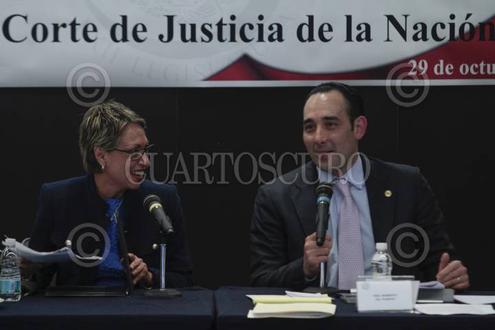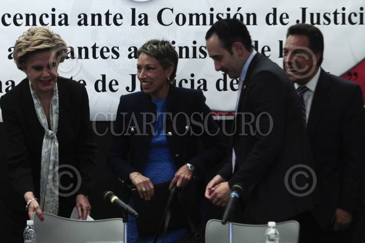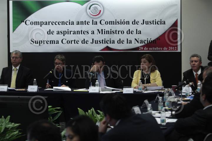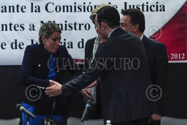 MÉXICO, D.F., 29OCTUBRE2012.- La Magistrada Emma Meza Fonseca y el senador panista roberto Gil durante la comparecencia ante la comisión de justicia de aspirantes a Ministro de la Suprema corte de Justicia de la Nación. FOTO: ENRIQUE ORDÓÑEZ /CUARTOSCURO.COM