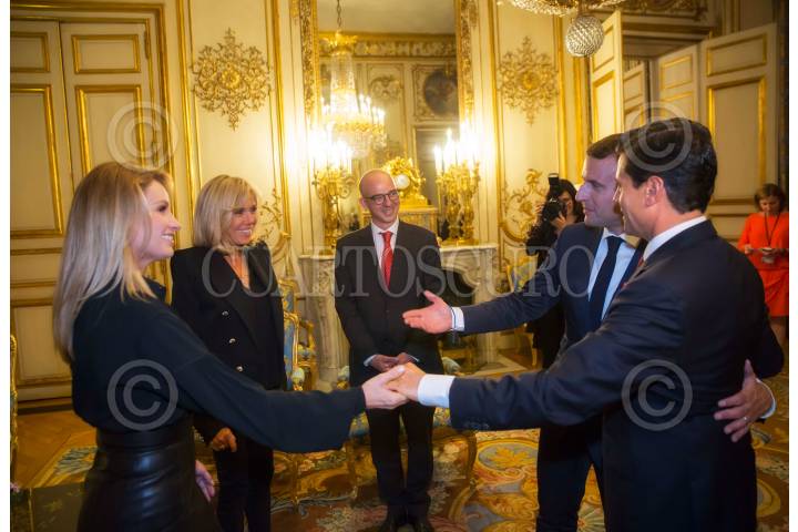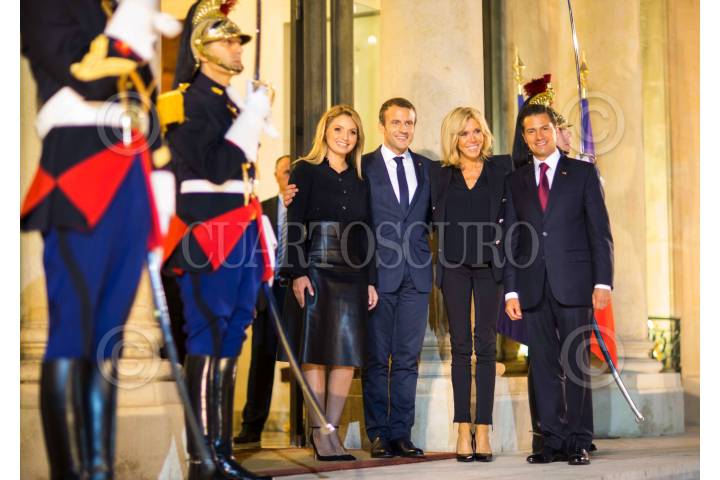 PARÍS, FRANCIA, 06JULIO2017.- Los Presidentes de México y de la República Francesa, Enrique Peña Nieto y Emmanuel Macron, se reunieron con sus esposas, Angélica Rivera de Peña y Brigitte Macron, al término de la cena que le ofreció el Mandatario galo al Jefe del Ejecutivo mexicano en el Palacio del Elíseo. FOTO: PRESIDENCIA /CUARTOSCURO.COM