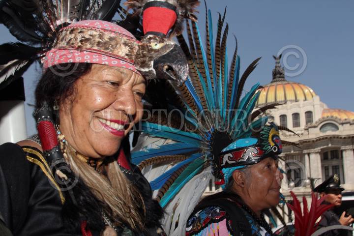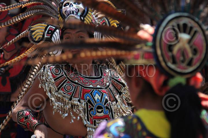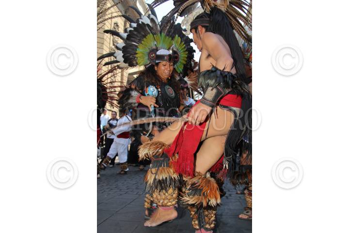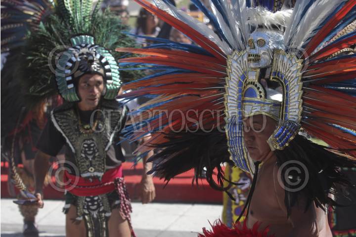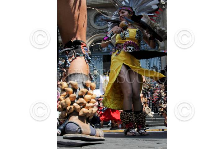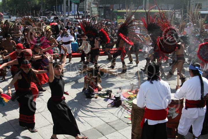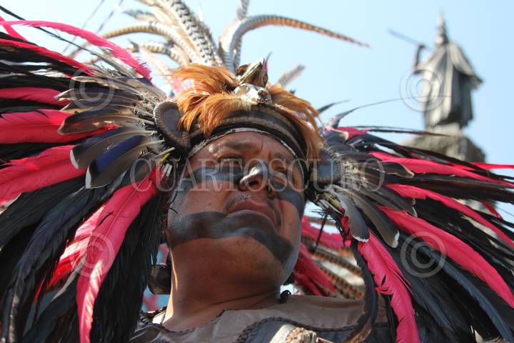 MÉXICO, D.F., 28FEBRERO2011.- Como parte del 486 aniversario luctuoso de Cuauhtemoc, en el monumento erigido a su nombre se realizó una ceremonia donde hubo una serie de bailes para conmemorar la muerte del ultimo emperador azteca. FOTO: ENRIQUE ORDÓÑEZ/CUARTOSCURO.COM