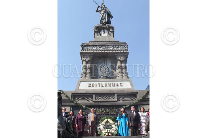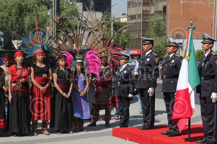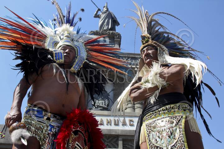 MÉXICO, D.F., 28FEBRERO2012.- Como parte del 487 aniversario luctuoso de Cuauhtemoc, se realizó una ceremonia en la estatua ubicada en Insurgentes y Reforma. FOTO: ENRIQUE ORDÓÑEZ /CUARTOSCURO.COM