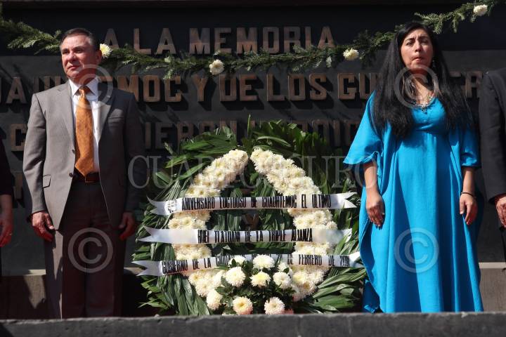 MÉXICO, D.F., 27FEBRERO2012.- Como parte del 487 aniversario luctuoso de Cuauhtemoc, se realizó una ceremonia en la estatua ubicada en Insurgentes y Reforma. FOTO: ENRIQUE ORDÓÑEZ /CUARTOSCURO.COM