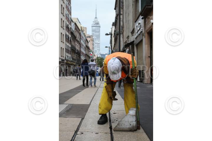 MÉXICO, D.F., 30SEPTIEMBRE2015.- Un trabajador del departamento de limpia del gobierno del Distrito Federal, cumple con su labor de sacar la basura rezagada en el corredor peatonal Madero en el centro de la ciudad. FOTO: ISABEL MATEOS /CUARTOSCURO.COM