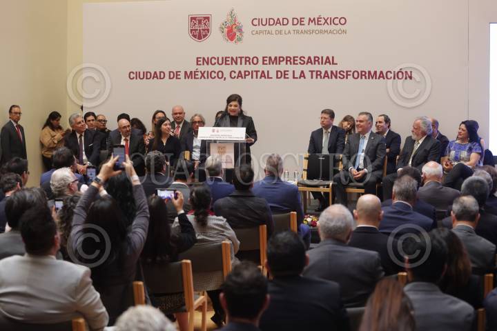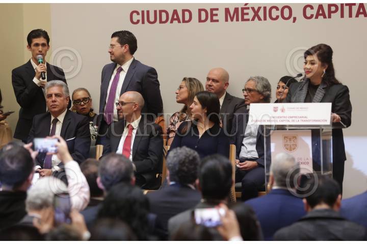 CIUDAD DE MÉXICO, 13NOVIEMBRE2024. La jefa de Gobierno de la Ciudad de México, Clara Brugada junto a parte de su gabinete y representantes del sector empresarial asistieron al Encuentro Empresarial Ciudad de México, Capital de la Transformación, en el Club de Industriales. FOTO: EDGAR NEGRETE LIRA/CUARTOSCURO.COM
