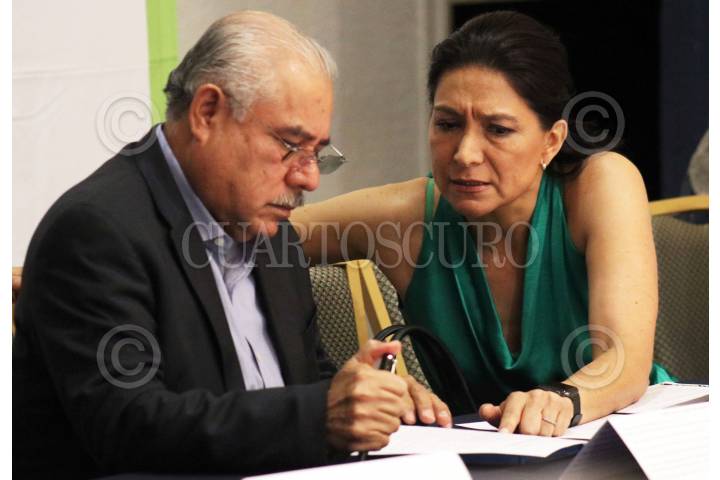 CUERNAVACA, MORELOS, 18OCTUBRE2018.- El vicealmirante José Antonio Ortiz Guarneros, Comisionado de Seguridad Pública del estado, y Ana Cecilia Rodríguez González la Secretaria de Economía y Trabajo, durante una reunión con el Consejo Coordinador Empresarial. FOTO: MARGARITO PÉREZ RETANA/ CUARTOSCURO.COM