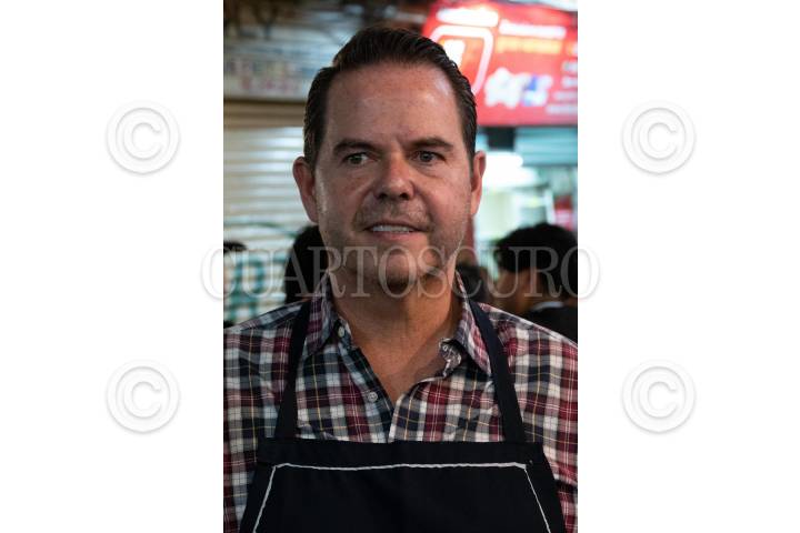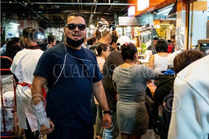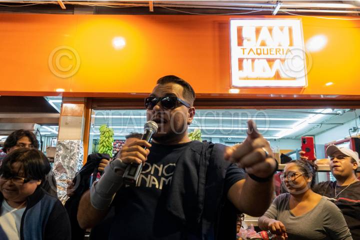 Salvador Villalobos Gómez durante la activación "De Empresas me echo un taco" en la Central de Abastos.