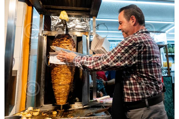 Carlos Saúl Álvarez García durante la activación “De Empresas me echo un taco” en la Taquería San Judas de la Central de Abastos (CEDA)