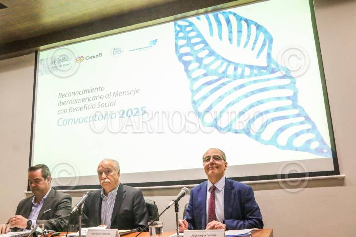 CIUDAD DE MÉXICO. 18MARZO2025.- El Centro Mexicano para la Filantropía, La Bolsa Mexicana de Valores y el Consejo de comunicación de la empresas presentaron la convocatoria para el premio "Caracol de Plata" que consiste en promover mensajes de impacto social. Salvador Villalobos Jorge Aguilar y Jorge Alegría Formoso dieron pormenores de este galardón. FOTO: VICTORIA VALTIERRA/CUARTOSCURO.COM
