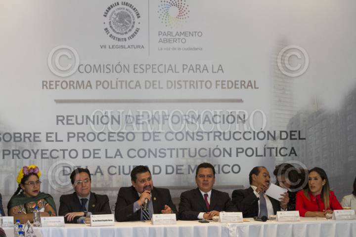 CIUDAD DE MÉXICO, 15AGOSTO2016.- Ernesto Sánchez Rodríguez; secretario de la comisión especial para la Reforma Política de la Ciudad de México; Manuel Granados Covarrubias, consejero jurídico de la Ciudad de México y secretario técnico de la comisión ejecutiva del grupo redactor del proyecto de Constitución de la Ciudad de México, y Encarnación Alfaro Cázares, presidente de la comisión especial para la Reforma Política de la Ciudad de México, durante la reunión informativa sobre el proceso de construcción de la Constitución Polítca de la Ciudad de México, en el ex templo de Corpus Chriti. FOTO: MOISÉS PABLO /CUARTOSCURO.COM