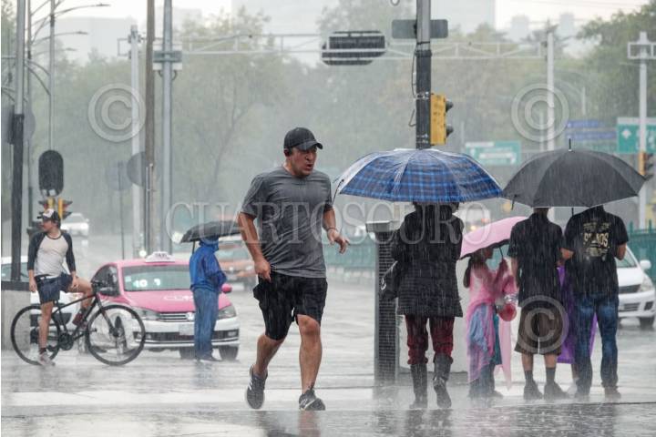 CIUDAD DE MÉXICO, 17JUNIO2025.- Un hombre realiza ejercicio mientras una fuerte lluvia se registra en la zona de Reforma. FOTO: GALO CAÑAS/CUARTOSCURO.COM