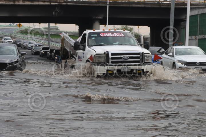 CIUDAD DE MÉXICO, 12AGOSTO2025.- Un encharcamiento se registró esta mañana en el cruce del Gran Canal y Periférico Río de los Remedios luego de las constantes lluvias registradas durante la madrugada. FOTO: ROGELIO MORALES/CUARTOSCURO.COM
