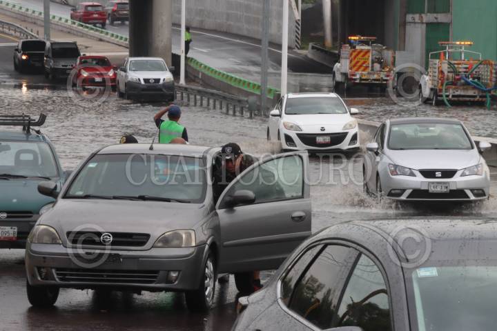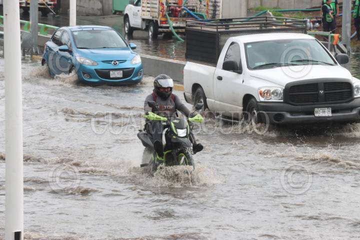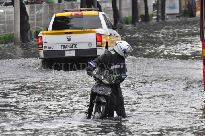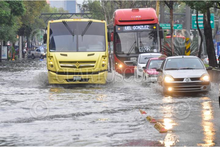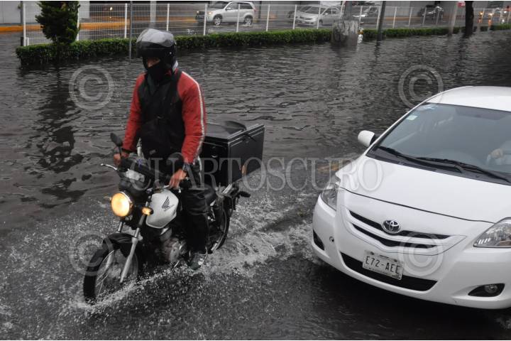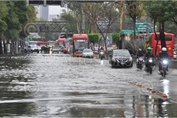 Fuertes lluvias azotaron el centro de la capital, lo que provocó un severo encharcamiento en Insurgentes Norte, a la altura de la plaza Forum Buenavista.
