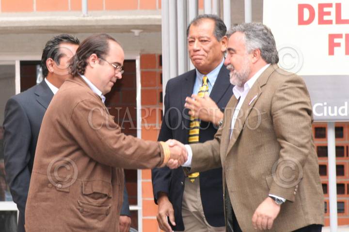 MÉXICO, D.F. 10JULIO2006.- Alejandro Encinas, en una ceremonia de premiación a policías, portó un listón tricolor en apoyo al candidato a la presidencia de la República del PRD. FOTO: Paola Hidalgo/CUARTOSCURO.COM