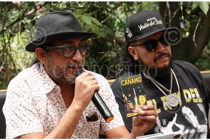 CIUDAD DE MÉXICO, 04ABRIL2024.- Julio Zenil, directo de la revista Cáñamo y el rapero Muelas de Gallo durante la conferencia de prensa para anunciar el Encuentro Cannábico 2024. Espacio que busca reunir a especialistas y comunidad del mundo de la cannabis para concientizar sobre su consumo y demás aplicaciones que la planta tiene. FOTO: GALO CAÑAS/CUARTOSCURO.COM