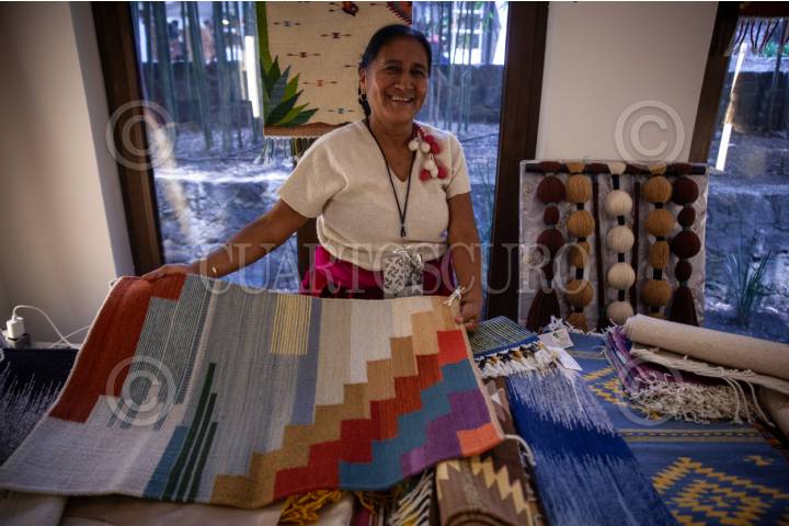 CIUDAD DE MÉXICO, 12JUNIO2025.- Artesana Oaxaqueña durante inauguración del Encuentro de Arte Decorativo y Utilitario en el Complejo Cultural Los Pinos el cual reúne a artesanos de todo el país. FOTO: ANDREA MURCIA /CUARTOSCURO.COM