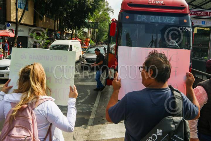 CIUDAD DE MÉXICO. 11JUNIO2025.- Trabajadores del hospital privado Trinidad, realizaron una protesta en las oficinas del nosocomio y posteriormente cerraron por algunos minutos la avenida Insurgentes Norte y Baja California; ocasionando un caos vial y la molestia de la gente que tuvo que bajar del metrobus. FOTO: VICTORIA VALTIERRA/CUARTOSCURO.COM